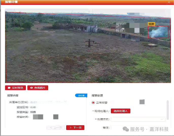 近期,我司为某油田勘探开发公司建设的视频智能分析系统在井场附近监控画面中识别到烟雾出现,现场报警位置紧邻井场围墙,存在巨大安全隐患。